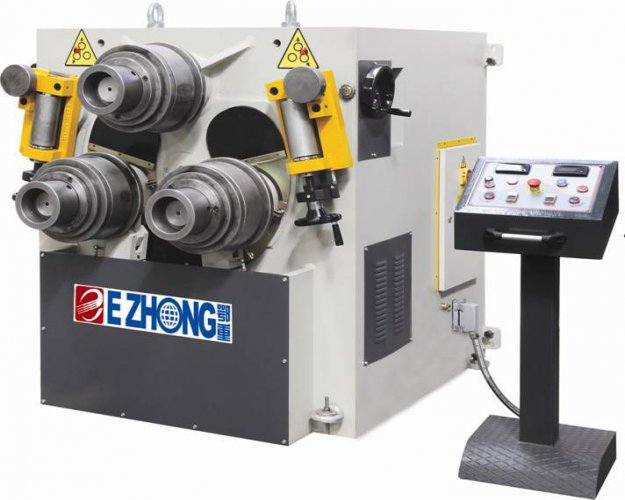 鄂重型材彎曲機,是用于角鋼、槽鋼、工字鋼、扁鋼、方管、圓管等各種異型材的卷彎專用高效加工設(shè)備,可完成各種型材的端部預(yù)彎,卷制圓形、弧形工件,廣泛用于航空航天、石油化工、水電、造船、汽車制造、機械制造、鋼結(jié)構(gòu)建筑等行業(yè)。 型材彎曲機結(jié)構(gòu)概述該機為弧線下調(diào)式結(jié)構(gòu),上輥軸固定,兩下輥軸圍繞一中軸相對于上輥軸分別作弧線升降運動,其功能主要是預(yù)彎型材的端部和使型材彎曲變形,同時兩下輥軸也為主傳動軸,由液壓馬達(dá)驅(qū)動,使彎曲變形的型材卷制成形。為防止型材在卷彎過程中的扭曲變形,提高型材的卷彎精度,增設(shè)有兩托輥和滾輪,可上、下垂直移動,以適應(yīng)卷彎不同規(guī)格和不同彎曲半徑的型材。